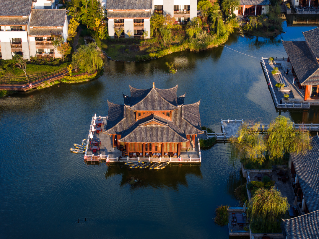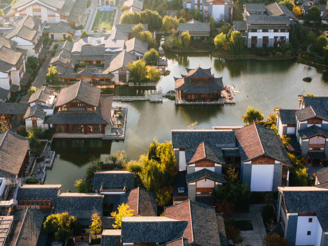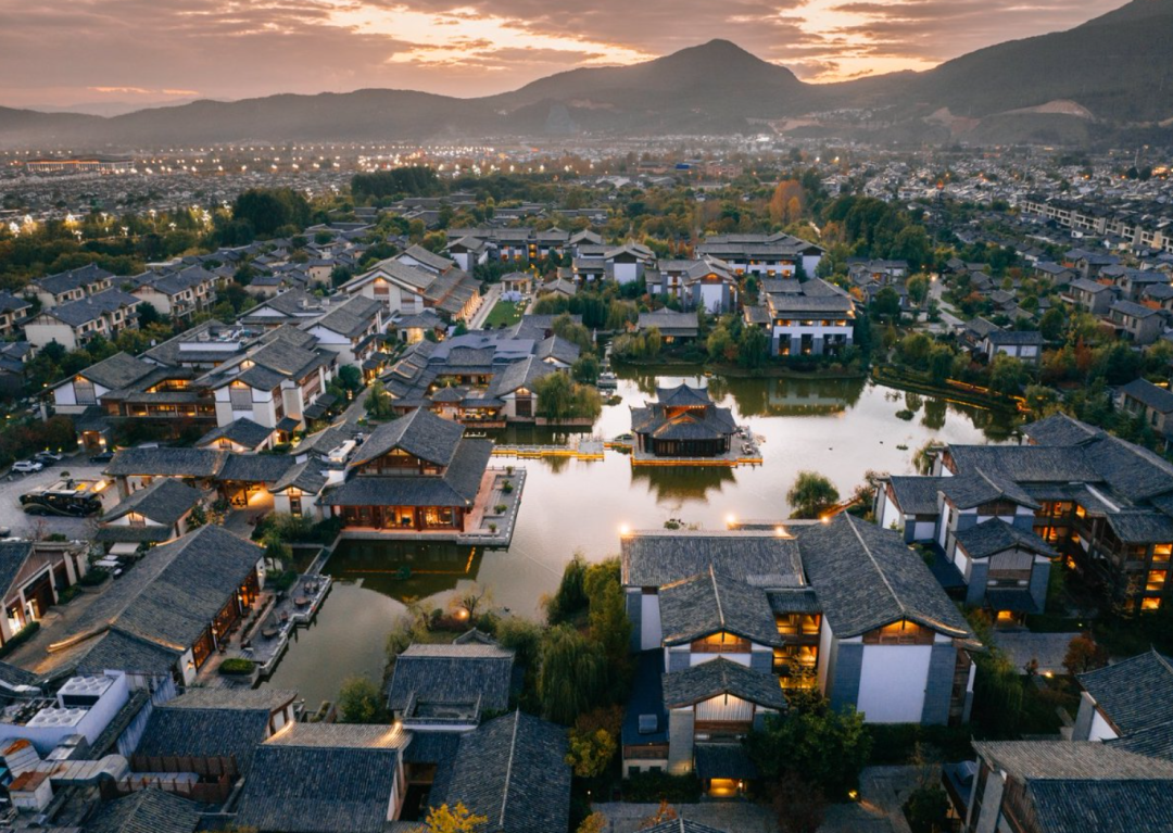 酒店整体设计灵感源自纳西族传统民居,采用了大量的木质结构、青瓦屋顶和庭院布局,营造出一种古朴而雅致的氛围。