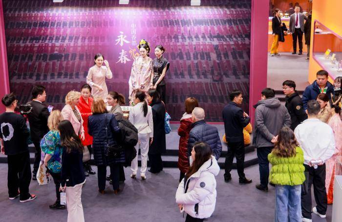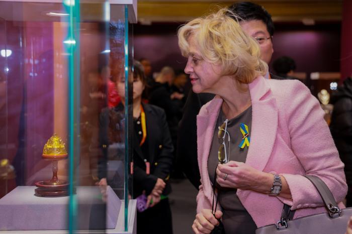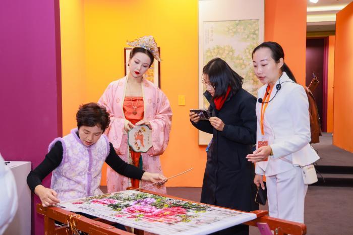 嘉宾驻足观看现场的非遗展览。