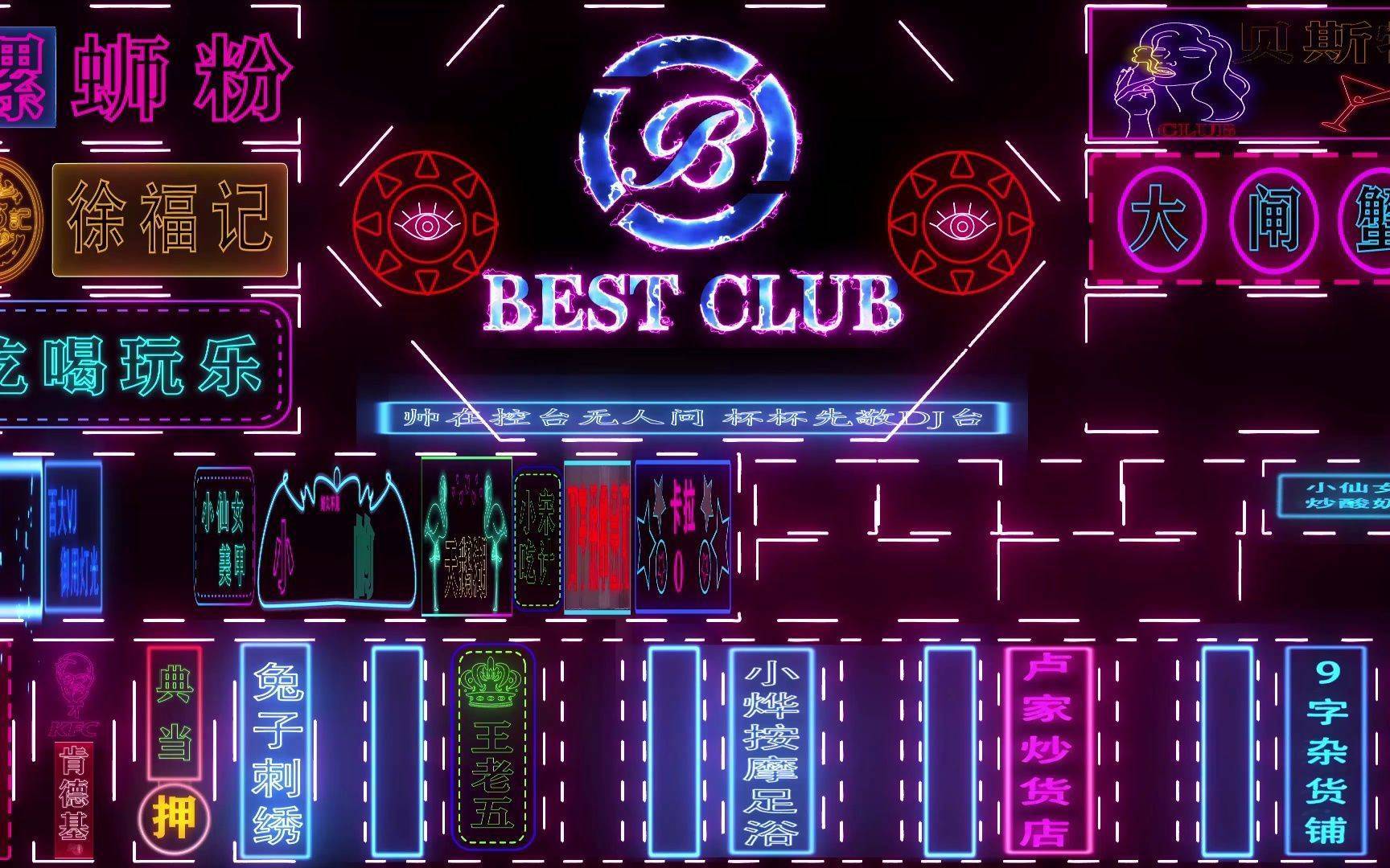 赛博朋克风格汉字的魔力,在于它破解了未来城市的视觉密码。设计师们从老式霓虹灯牌的玻璃弯管工艺中汲取灵感,将宋体的横细竖粗结构与霓虹灯管的流体特性结合,创造出既有机械精密感又保留手写温度的字体系统。在武汉的"赛博街区",这种字体被应用于从交通指示牌到商铺招牌的全场景:"出口"二字的竖钩被设计成闪电形状,"安全通道"的走之底化作流动的光带,连公共厕所的标识都用故障艺术效果区分男女——这种将功能信息与美学表达融为一体的设计,让冰冷的城市基础设施有了赛博时代的诗意。