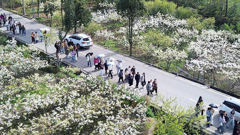 三月的棚花村已然成了花的海洋。连片梨花进入盛花期,素白花瓣覆满枝头,如积雪凝霜,似流云漫坡,顺着山势连绵铺展,与远山青黛、村落民居相映成趣。种植基地里,五颜六色的油菜花芬香扑鼻、随风摇曳,分外娇艳。
