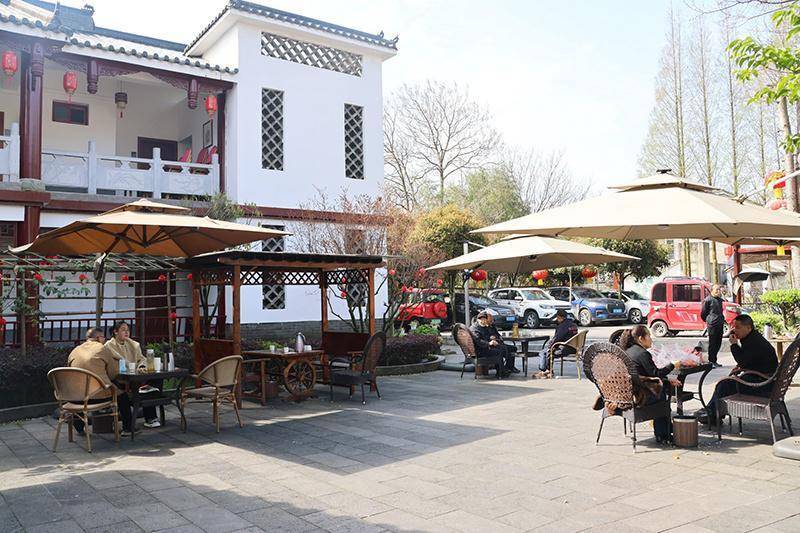 游客在农家乐喝茶聊天。绵竹市融媒体中心供图