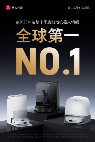 值得一提的是,石头扫地机器人自2023年至今已连续十季度销额排名全球第一。长期稳定的领先态势,再次印证石头科技在全球智能清洁电器领域的核心竞争力和行业话语权。