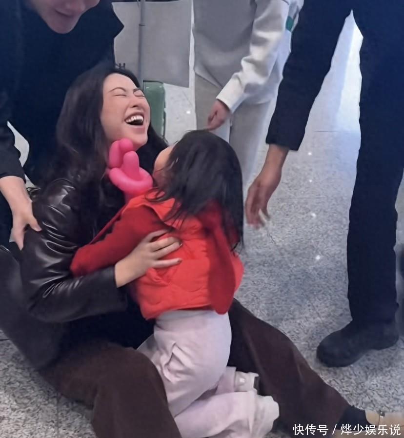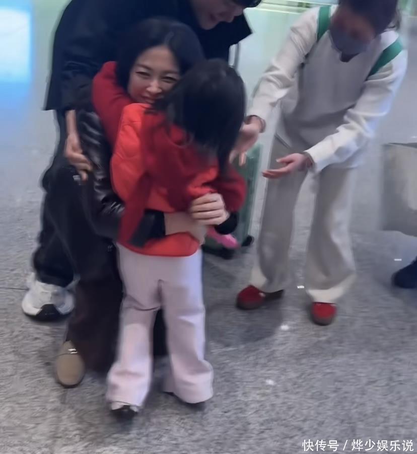 4岁的小珠宝,个儿早就超过妈妈的腰了。虽然个子苗条,但力气特别大。她穿着红色的上衣,白色的裤子,披着一头长长的头发,在人群里特别引人注意。她快步跑着,朝妈妈冲了过去,没想到一时没有防备,朱珠就被扑倒了。这个温馨的拥抱,让朱珠笑得一脸满足。